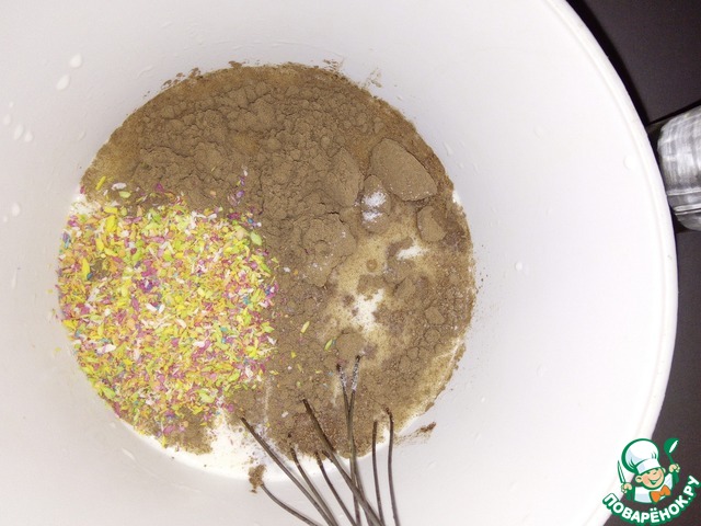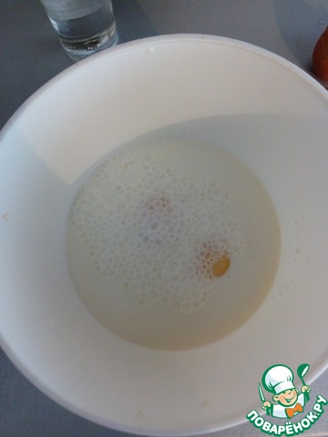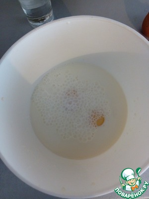 В молоко вводим сахар, соду, яйца и перемешиваем.