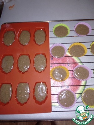 1 вариант приготовления:тесто раскладываем по формам и запекаем при температуре 180 градусов 10 минут.