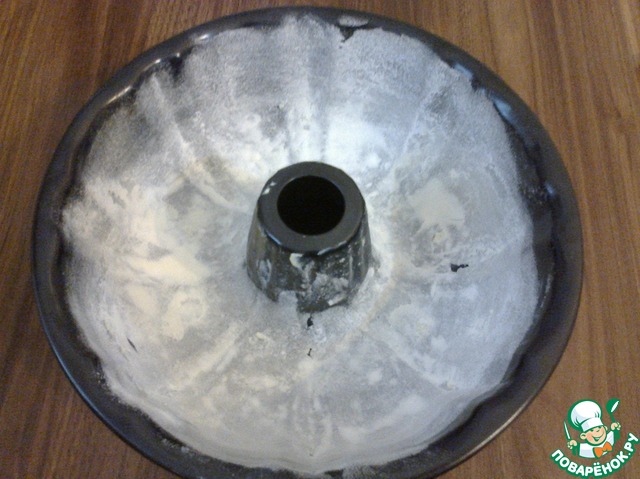 Форму смазать маслом, растительным или сливочным, можно дополнительно обсыпать мукой.