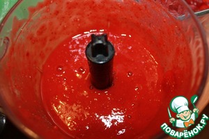 Добавляем клубничное пюре и оставшиеся целые ягоды клубники (несколько штук можно оставить для украшения).