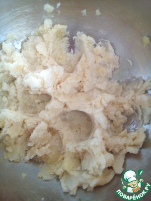 Сварить картошку и пожарить мелко нарезанный лук до золотистого цвета. Картошку размять до состояния пюре.