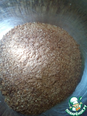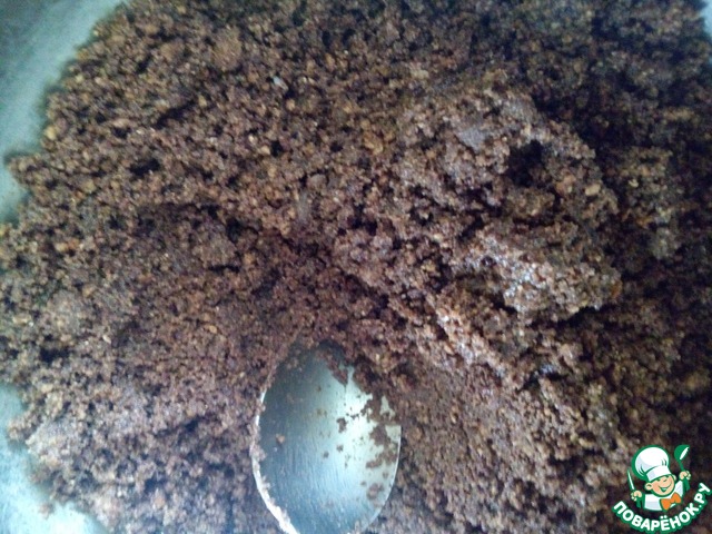 Добавляем какао и растопленное сливочное масло и замешиваем густое липкое тесто.