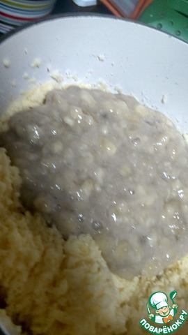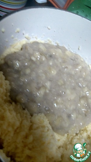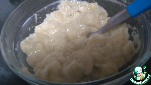 Прежде всего нам нужно вилочкой размять бананы. У меня они были не очень спелые, поэтому однородного пюре не получилось, но это совсем не критично!