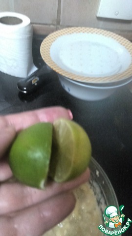 В размятые бананы мы выдавливаем сок одного лайма или маленького лимона (ну, или половинку большого). Чтобы сок лучше выдавливался, лимончик лучше покатать с усилием по столу сначала