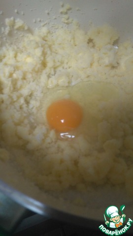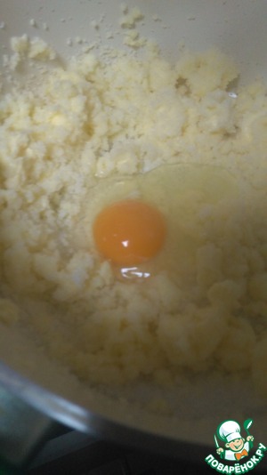 и в отдельной посуде взбиваем мягкое сливочное масло, весь сахар и одно яйцо. -