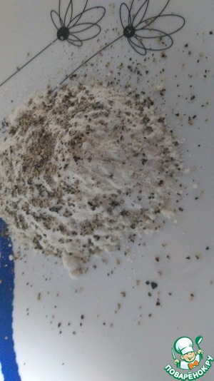 На тарелочке смешиваем черный перец, муку и соль.