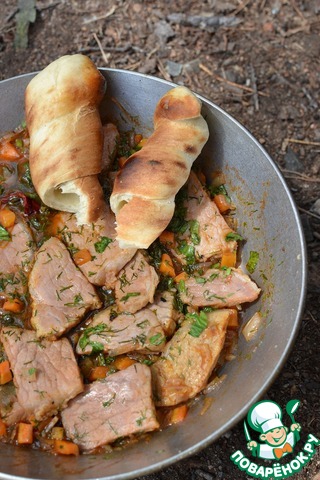 И выпекаем над углями - минут 30-45, периодически поворачивая.