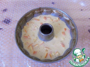 Ставлю в разогретую духовку и выпекаю на среднем огне до готовности (проверяю спичкой: вставляю в тесто и если готово, то к ней ничего не прилипает) -