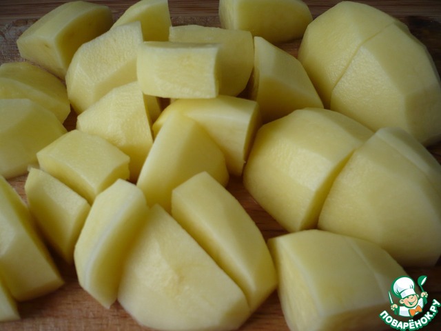Картофель очистить и разрезать на дольки.