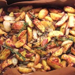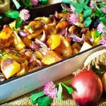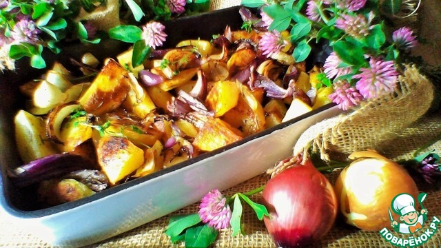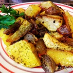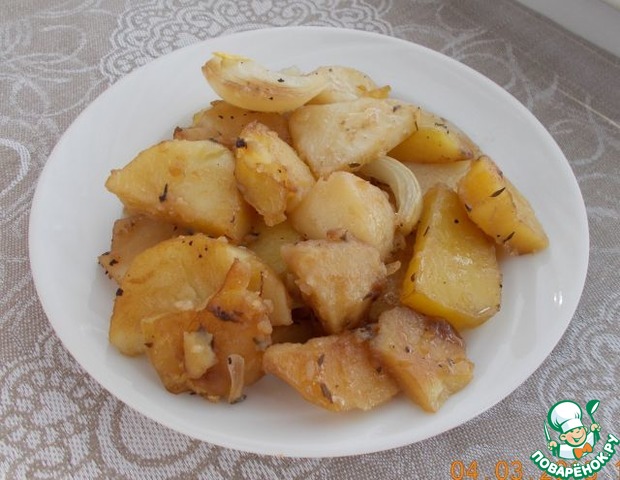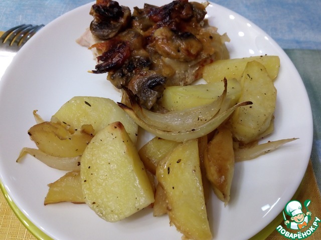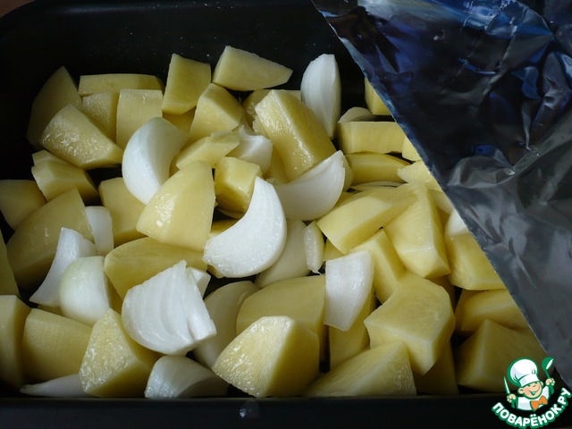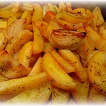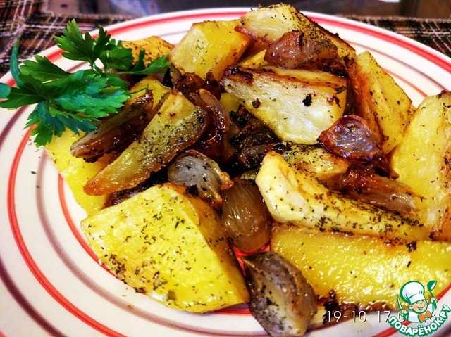Картофельные дольки, запеченные с луком