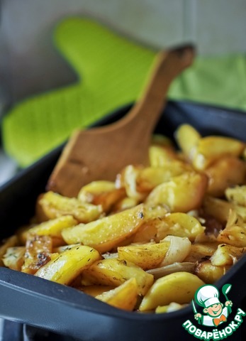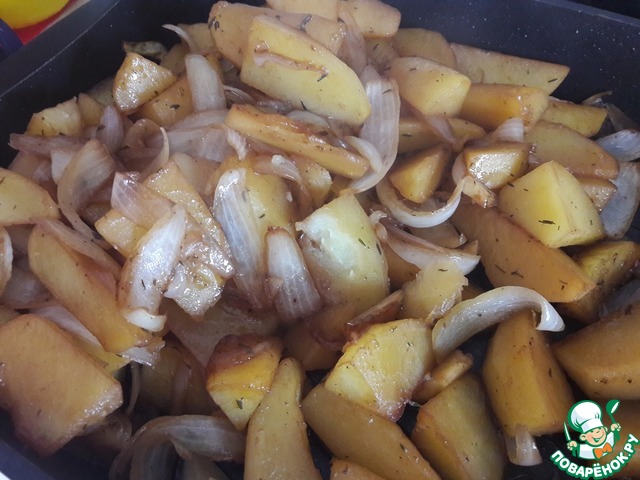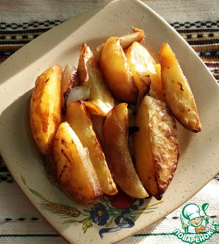 Рецепт «Картофельные дольки, запеченные с луком»: