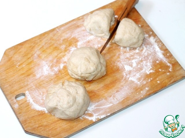 7. Приготовим струли. Достаем охлажденное тесто и разрезаем его на 3 части. Одну часть разрезаем пополам.