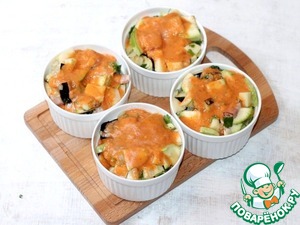 7. Разложите овощную смесь с грудинкой в формочки...