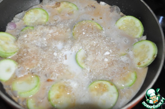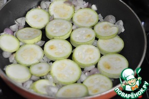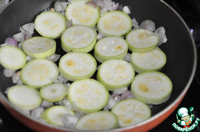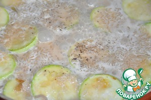 Кладём на сковороду кружки кабачка и слегка обжариваем с обеих сторон.