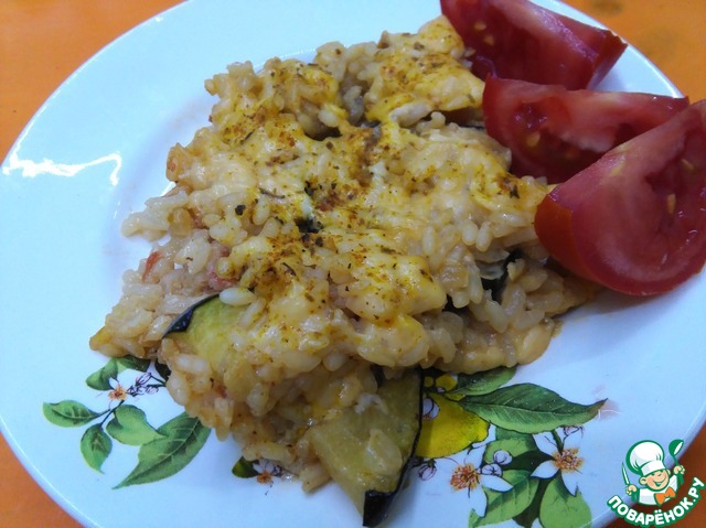 Мои домашние очень любят кабачки,а в частности запеканку из риса и кабачков. Поэтому думала,что гратен не будет чем-то особенно примечателен. Но оказалось совсем наоборот. Такие незначительные добавки в виде бульона и соевого соуса, особенно, можно сказать вдохнули новую жизнь в обыденное блюдо!