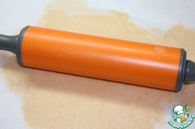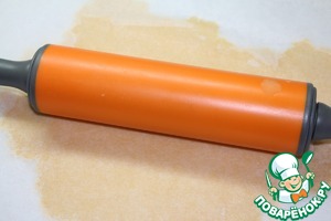 Холодное тесто раскатать между двумя листами пергамента. Делать это нужно быстро, желательно холодными руками и раскатывая холодной скалкой, иначе тесто опять может начать крошиться.