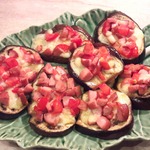 [+5]Делала вдоль, потому что баклажаны тонкие. Вместо сосисок свежие шампиньоны.