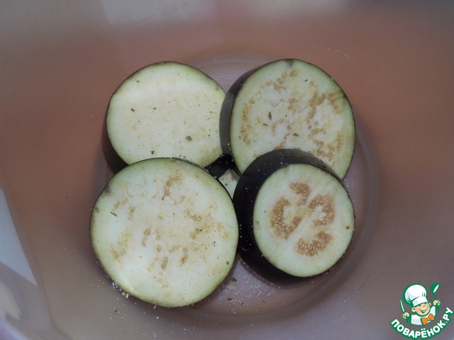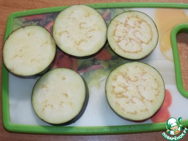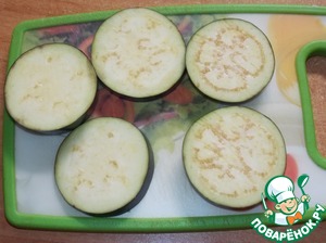 Баклажаны нарезать кружочками толщиной примерно 1 см.