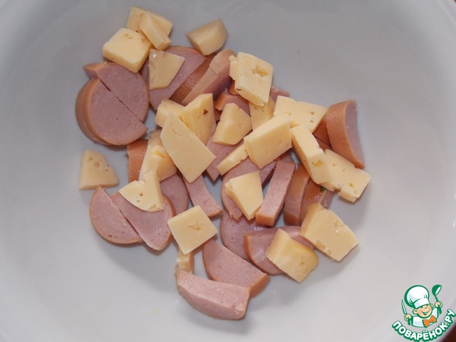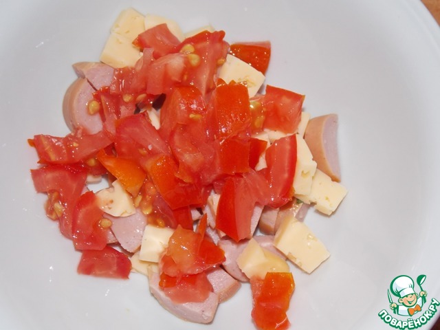 Сверху выложить подготовленную начинку и запечь в течении 7-10 минут.
