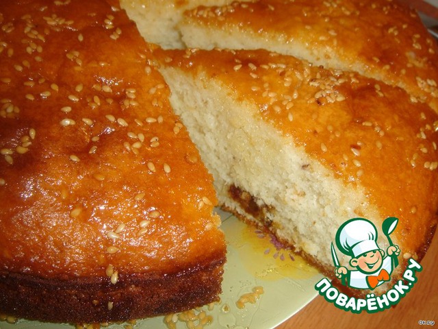 Очень вкусный кекс. Нежнейший сладкий бисквит с кусочками фиников, политый медово-лимонным соусом с кунжутом. Ну очень вкусно!