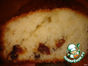 Готовый кекс обильно полейте соусом. Получается очень интересное сочетание сладкого теста и кисловатого соуса.