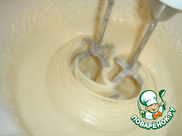 Просейте муку и разрыхлитель, добавьте в полученную смесь. Взбейте. -