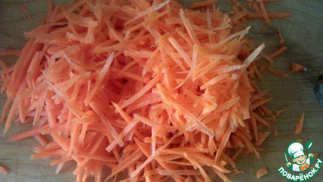 Затем отправляем туда морковь и жарим еще 4 минуты.