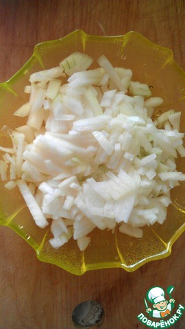 Затем отправляем к фаршу лук и жарим еще 2 минуты.