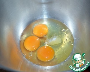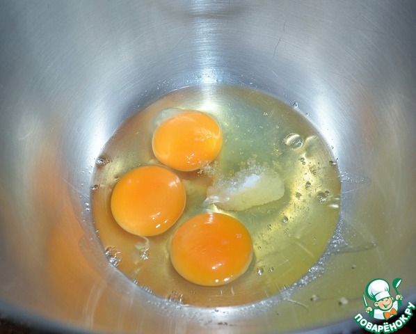 Яйца взбить с солью, до пышности.