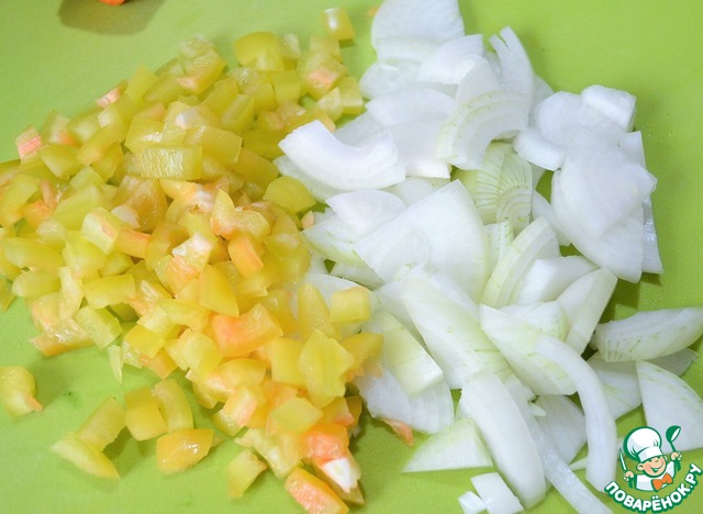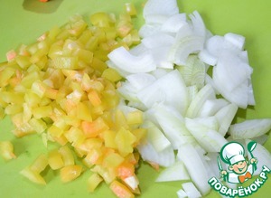 Перец и лук нарезать, некрупно.