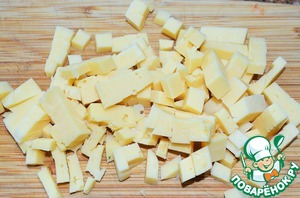 85 г. сыра нарезать на мелкие кубики.