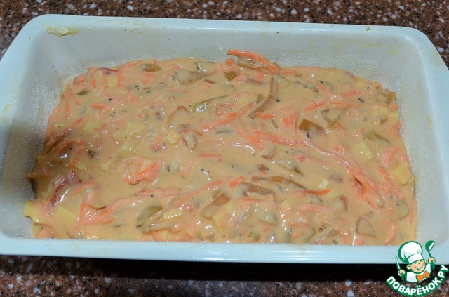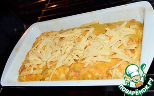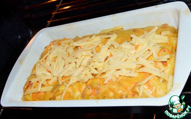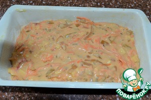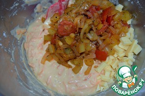 Соединить тесто, овощи и сыр.