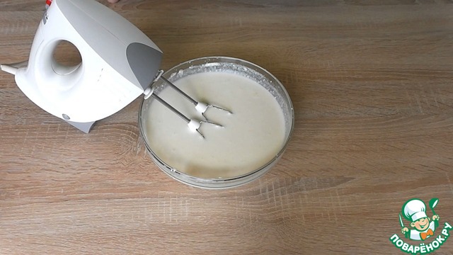 • Делаем начинку. Желатин растворяем в горячей воде. Смешиваем миксером или блендером между собой остальные ингредиенты. Добавляем в массу желатин и размешиваем. Отправляем крем в холодильник, чтобы он немного загустел.