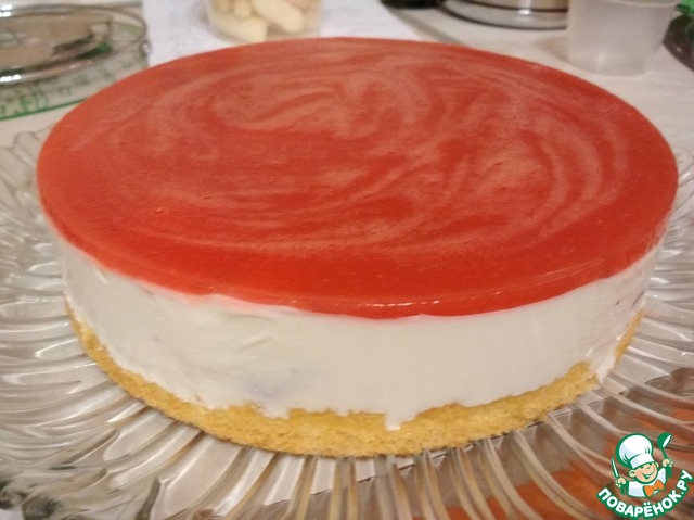 Выливаем крем на заготовку и отправляем торт в холодильник до застывания.