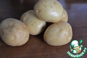 • Отварить картофель в мундире в подсоленной воде до готовности.
