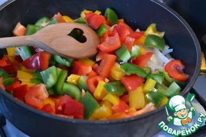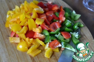 • Болгарский перец и перец чили нарежем на произвольные кусочки.