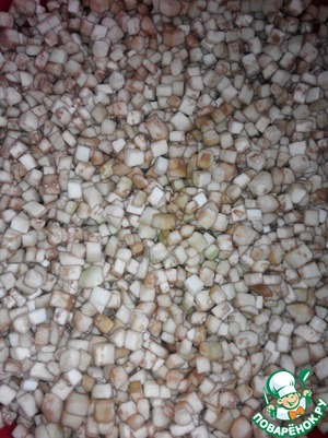 Баклажаны отжать от жидкости и обжарить до полуготовности на растительном масле.