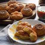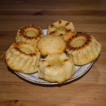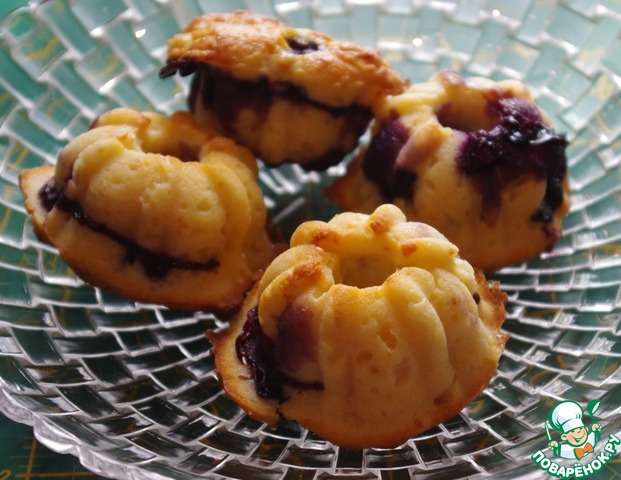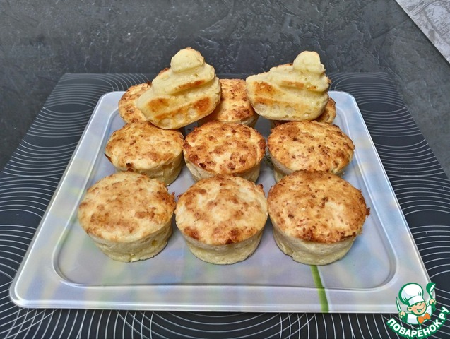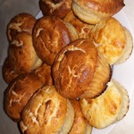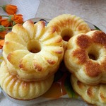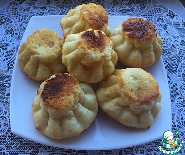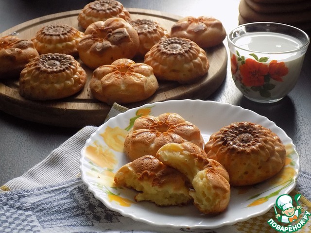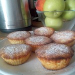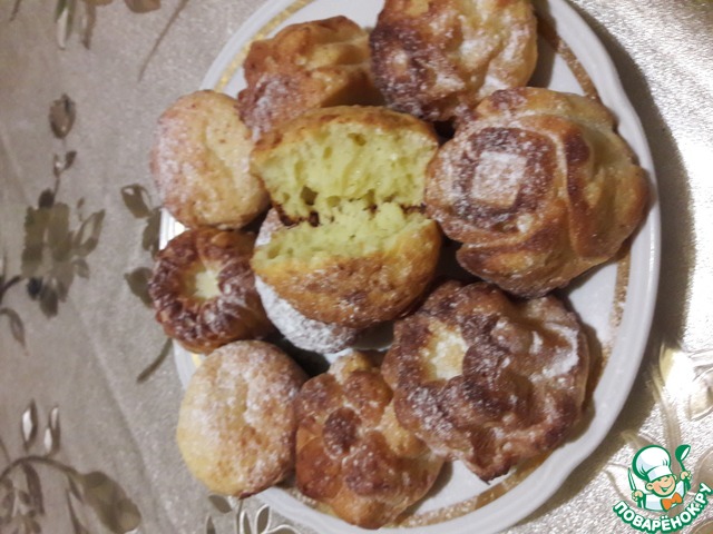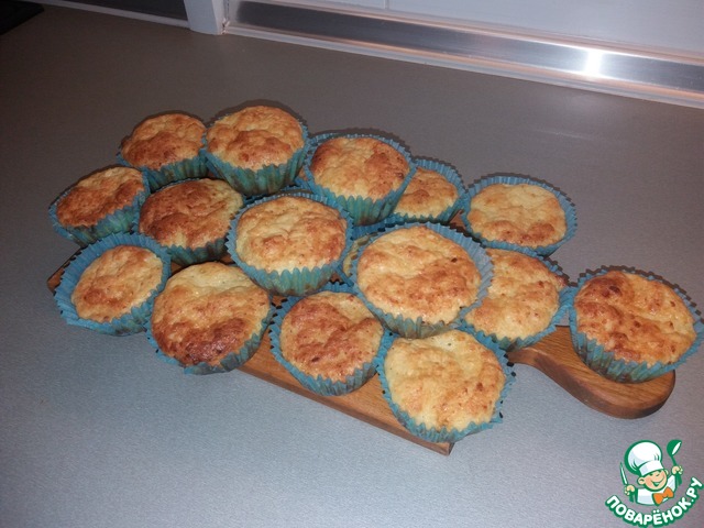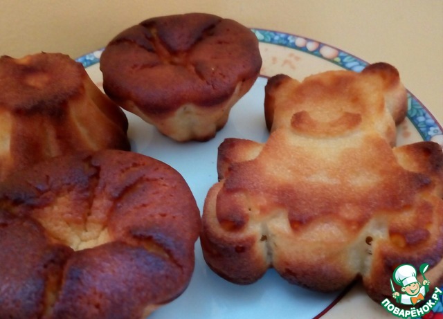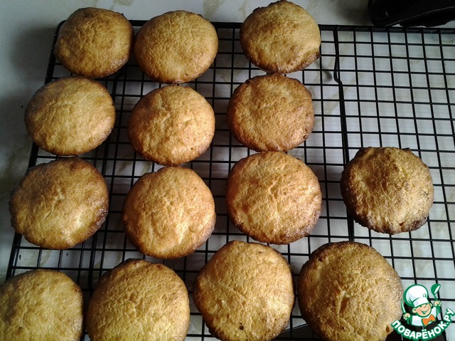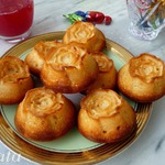Сахара 100 положила, 15 мин при 180 градусах выпекала. В прошлый раз проучилось 22, теперь в эти же формы 13 шт. Положила побольше теста в каждую