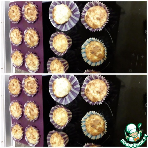 Мне показалось, что маффины немного опали после открытия духовки на 20й минуте выпечки, уже стала проверять их деревянной палочкой. До того были просто потрясающе ровненькие и пышные до краев формочек.