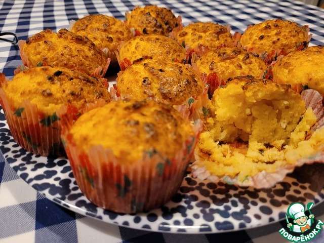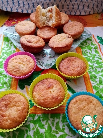 Автор рецепта писал, что эти маффины рекомендуется выпекать именно в виде порционных кексов - так мякиша получается не слишком много и площади корочки хватает, чтобы сохранить внешний вид изделий. При выпекании в большой форме середина может опасть.