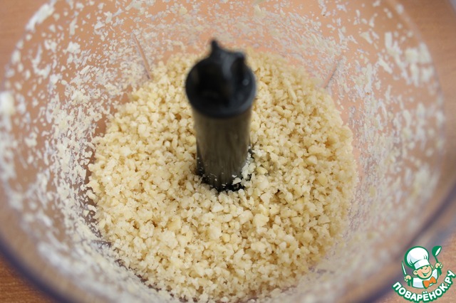 Миндаль заливаем кипятком и даем постоять 15 минут. Очищаем от кожицы и измельчаем в блендере (можно оставить орехи целыми).