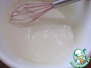 Возвращаемся к оладьям. Кто еще не забыл, мы кабачковые оладьи готовим. Ставим разогреваться сковородку, налив масло. Оставшуюся 1 ст. л. муки перемешиваем с содой, всыпаем в тесто, работаем венчиком, пытаемся определить, достаточно ли муки. Тесто должно остаться жидким, но от венчика остаются такие вот полосы, исчезают не сразу.