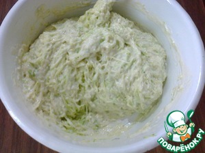 В готовое тесто добавляем стекшие кабачки.