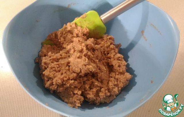 Смешайте обе массы. Гречневая мука сразу впитывает всю влагу, смесь становится легкой и сухой. Однако, крутое тесто не нужно - если мука впитала слишком много жидкости, добавьте воды.