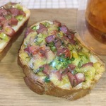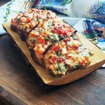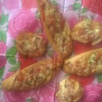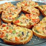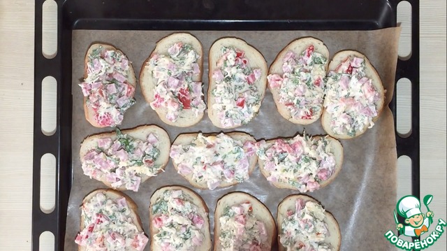 5. Намазать ломтики батона сливочным маслом и выложить на противень маслом вниз.