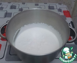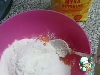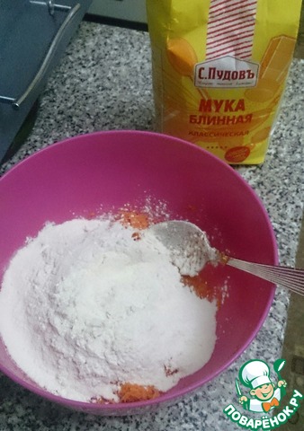 Всыпаем муку, замешиваем тесто. Оно получится как паста, густое. |