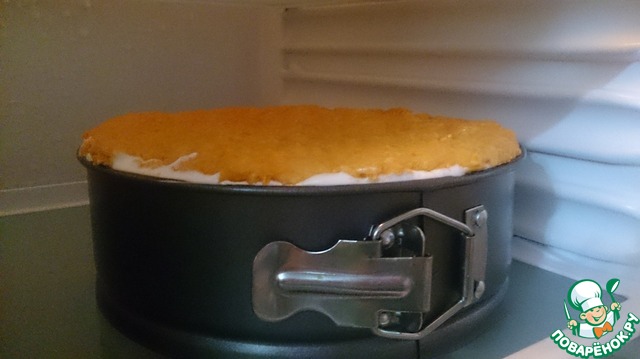 Торт собираю в форме, чтоб хорошо пропитался и оставляю на ночь в холодильнике. |