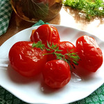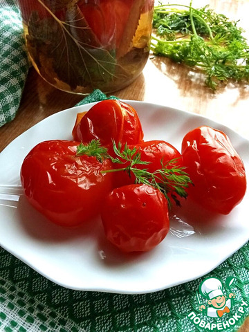 3. Помидоры проколоть у плодоножки, чтоб не потрескались и для того, чтобы рассол равномерно впитался.