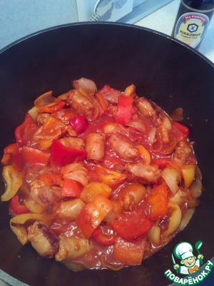Добавить протертые помидоры, томатное пюре, соевый соус ТМ Kikkoman, досаливать блюдо не требуется.