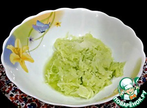 Очищенные от кожуры огурцы натереть на мелкой терке, добавить 1/4 ч. л. соли, перемешать и забыть на время, пока подходит опара.
